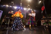 親しみやすいMCを挟みつつ、ライブでは扇情的なリズムで観客を鼓舞するEGO-WRAPPIN' AND THE GOSSIP OF JAXX。後半は、ムーディにしっとりと歌い上げる「色彩のブルース」、怪しく異国情緒漂う「Neon Sign Stomp」、中納のラップと森のカッティングギターが印象的なファンクチューン「10万年後の君へ」と続く。ラストは「くちばしにチェリー」「GO ACTION」というバンド屈指のキラーチューンを連続で投下し、中納の「スペシャルな1日やー!」という叫びに応えるようにフロアは狂喜乱舞した。