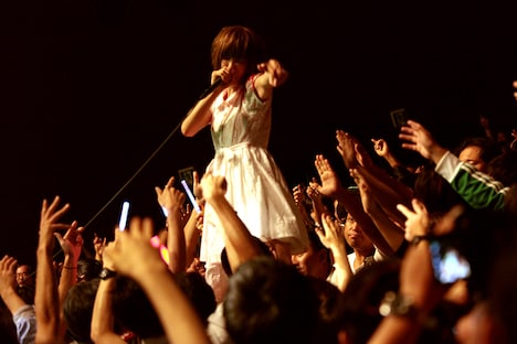 最初に登場したSilent Sirenは軽快なロックナンバー「BANG! BANG! BANG!」でライブをスタートさせると、「トップバッターだし、こりゃなんかやらないかんと思って、新曲を持ってきましたー!」と発売前の楽曲「爽快ロック!」を披露。この曲は彼女たちが花王「サクセス 薬用スカルプスマッシュ」の応援隊として歌う、さわやかかつパワフルな“ガチアゲ”ソングだ。5人はさらに「ビーサン」のシンガロングで観客との一体感を作り上げ、続くLinQにバトンを渡した。福岡在住のLinQは天野なつ、大庭彩歌、吉川千愛、桃咲まゆ、高木悠未、新木さくら、姫崎愛未、伊藤麻希、福山果奈の9人がメンバーを代表してステージへ。LinQの姿勢を歌った「マケナイガールズ」、9月24日にシングルリリースされたばかりのファンキーな新曲「ウェッサイ!!ガッサイ!!」など4曲のパフォーマンスで強烈な印象を与えた。
