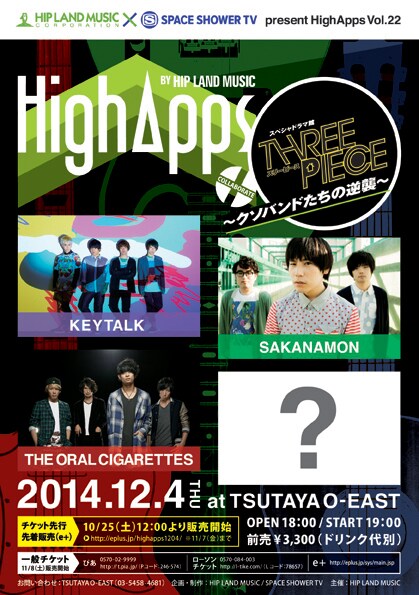 12月4日に東京・TSUTAYA O-EASTにてライブイベント「HighApps Vol.22 -collaboration『スリーピース~クソバンドたちの逆襲~』」が開催される。