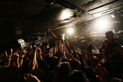 最初に登場したのはゲストのSECRET 7 LINE。彼らは「DOWN TO HELL」「BURN TO THE GROUND 」などキャッチーなナンバーを次々と投下し、場内を盛り上げていく。バンドの煽りにあわせてコール&レスポンスやハンドクラップで応える観客を観て、RYO(G, Vo)は「マイファスはいいすげーファンがついてるな!」とうれしそうに話し、3人は笑顔で先攻を終えた。