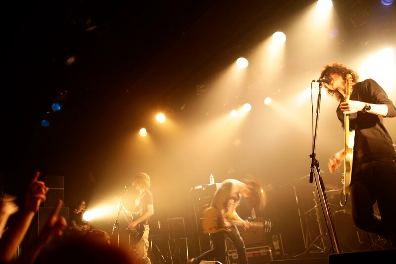 ブルージーなSEをバックに静かに登場したのは3番手のtacica。「人間1/2」「黄色いカラス」と疾走感あふれるナンバーを次々と披露し、最新シングル「人鳥哀歌」で会場の温度を一気に上昇させる。情感豊かな猪狩翔一(Vo,G)の歌声はライブが進むごとに広がり、フロアでは拳を掲げその歌に応える姿が目についた。MCで猪狩は「(ツアーファイナルだから)今朝は左右違う靴を履いてきそうになった」と微笑ましいエピソードを口にし、「楽しいツアーでした」と充実した日々を静かに振り返った。ラストはライブで欠かすことのできない「HERO」を全身全霊で演奏。約30分という短い時間の中で新旧のナンバーを織り交ぜたセットリストを展開し、3人は汗だくになりながらステージを去った。