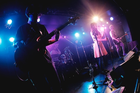 そしてyuthkeによるギターインプロビゼーションで魅せる「moonlight」、junet kobayashi(B)の地を這うようなうねるベースが先導する「train」という2曲のインストナンバーと、メロウな「デイドリーアンドマリー」「スピカ」を挟んで、ライブは後半戦へと突入する。kuroが「泣かないぞ! 感無量だけど」とはにかみながら改めてオーディエンスに感謝の意を表したのを合図に、バンドはアップリフティングナンバーを4連発。そして「エンターキー」「クライマクス」のリズムに乗せて無手勝手なステップを踏むkuroに煽られるかようにフロアが踊らされたところで本編は終了。「ありがとう」のシンプルな言葉を残して5人はステージをあとにした。