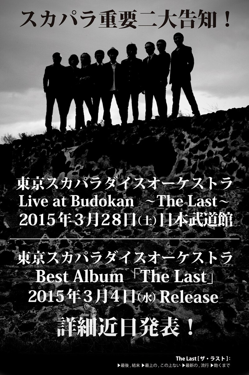 スカパラ3月にベスト盤&武道館公演、題名は「The Last」 - 音楽ナタリー http://t.co/D6EoFktn9n #tspo