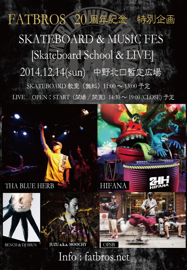 今週日曜(12/14)、これのお手伝いしてます。中野駅前でTBHとHIFANA!!→「FATBROS」20周年記念イベント開催、無料スケートボード教室も - 音楽ナタリー http://t.co/QqTPLp6j6a