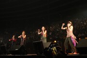 続いて登場したのはTRF。最新シングル「Memorial Snow」や大ヒット曲「EZ DO DANCE」「survival dance -no no cry more-」など、幅広いセットリストで総立ちのオーディエンスを大いに盛り上げる。メンバーはそれぞれステージ左右の花道までいっぱいに走り回り、ベテランとは思えないパワーを見せつけた。