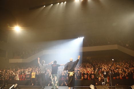 大きな会場でのアニバーサリー公演にもかかわらず、この日の彼らはあくまで普段と変わらないシンプルな構成でライブを実施。ステージ上に置かれたのはドラムセットやアンプといった最低限の機材のみで、照明以外に舞台演出もほとんどないまま、3人は自らの演奏だけでホール全体に熱狂を生み出していく。MCでも、デビュー当時の思い出話などを中心にしつつ、いつもどおりのリラックスしたトークで笑いを誘った。大きいステージでやり慣れていないため、動きまわったあとでマイクスタンドに戻る感覚がイマイチ掴めないという鈴木研一(B, Vo)は、「たまには大きいところでやんなきゃダメだね。次は日本武道館かな?」とポツリ。それを聞いた和嶋は「それはまだ危険です!」と慌てつつも、「30周年で目指しましょう!」と宣言していた。