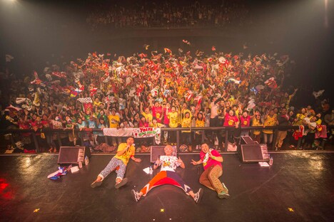 この日のライブは昨年12月23日の宮城・仙台電力ホールから今年1月31日の大阪・なんばHatchまで7都市で行われた全国ツアーの追加公演。1曲目「エール」から幕を開け、DEppa、肉だんご、桃紅茶の3人は拳を力強く振りながら歌い、会場の一体感を高めていく。続けて「ライフ☆カーニバル」「MUSIC」という陽気なナンバーでは観客がそろって大きく腕を振り、コーラスパートを合唱する場面も見られた。