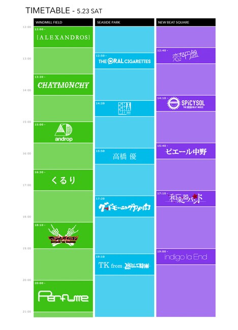 [Alexandros] / androp / indigo la End / THE ORAL CIGARETTES / グッドモーニングアメリカ / くるり / 恋する円盤 / SHISHAMO / SPiCYSOL / 高橋優 / チャットモンチー / TK from 凛として時雨 / Perfume / ピエール中野 / マキシマム ザ ホルモン / 和楽器バンド