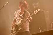 メランコリックな空気を雲散させたのは、古賀の夢を叶えるコーナー。一旦退場した彼がユニフォームとも言える黒シャツから白シャツに着替えて登場すると、ほかのメンバーは「古賀がどこにいるかわかる!」といじり倒す。しかしメンバーのツッコミを意に介することなく古賀は、「俺の夢は空を飛ぶこと! (シャツが)黒いと飛んでるの見えないから」と語ると、ハーネスを装着し、ギターを抱えたまま武道館の2階席の高さまで登っていった。観客を楽しませる演出はこれだけで終わらず、古賀はそのまま「盛者必衰の理、お断り」を宙づりになったままプレイ。笑いとどよめきが起こる中での奇妙なパフォーマンスとなった。ステージに無事戻った古賀は、素早く黒いシャツに着替えると「フルドライブ」のイントロを勢いよくかき鳴し、ライブのクライマックスに向けて演奏に力を込める。淡雪を模した泡が舞う中で披露された「スノーグローブ」のあとは、本編のラストナンバーとして「シルエット」が奏でられた。