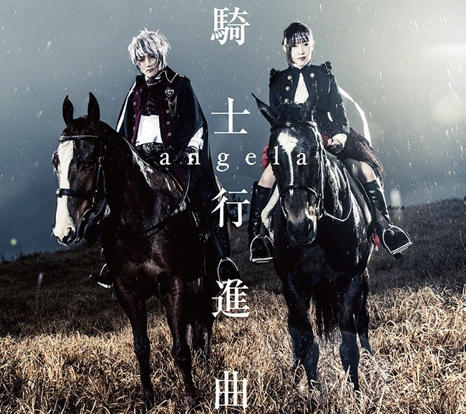 ジャケットは騎士を思わせるファッションに身を包んだangelaの2人が馬に乗る姿をフィーチャー。「騎士行進曲」のイメージを具現化したビジュアルに仕上がっている。