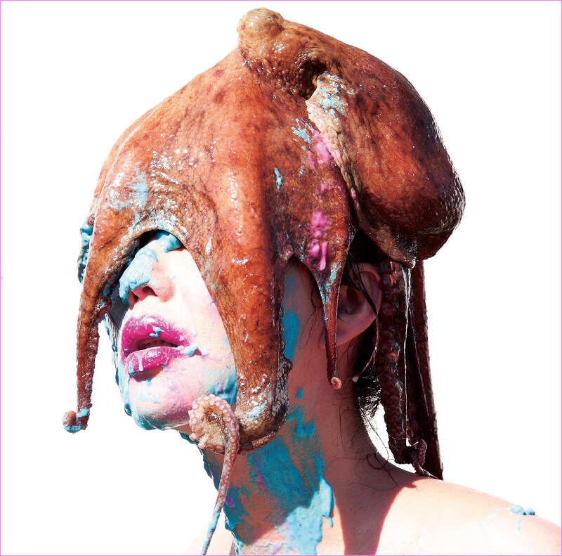 写真はアルバム「camouflage」のジャケット写真。インパクトたっぷりのアートワークは、メンバーとも親交のある気鋭のアーティスト、ピュ~ぴるが手がけた。