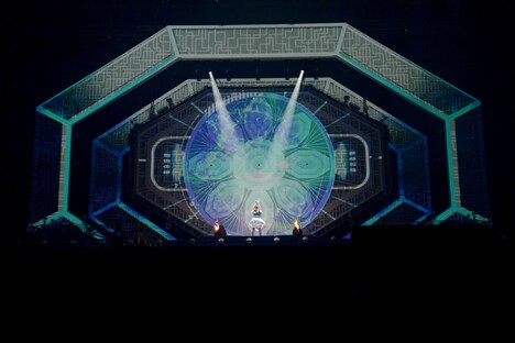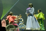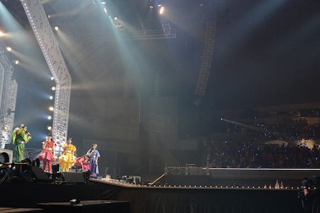 序盤では「カントリーガール」や「恋人はスナイパー」、彼女たちが5月13日にリリースするニューシングル「天才バカボン」のカップリングナンバーで「幕張HOLLYWOOD」のテーマに沿って制作された「いけいけハリウッド」など、浅野尚志が手がけたナンバーが連続で投下される。足を負傷している安藤ゆずは車いすでの参加となったが、ほかのメンバーや仮面を付けた“しもべ”のサポートを受け、ステージを移動しながら熱唱したり、観客を煽ったりとパワフルなパフォーマンスでオーディエンスを盛り上げた。