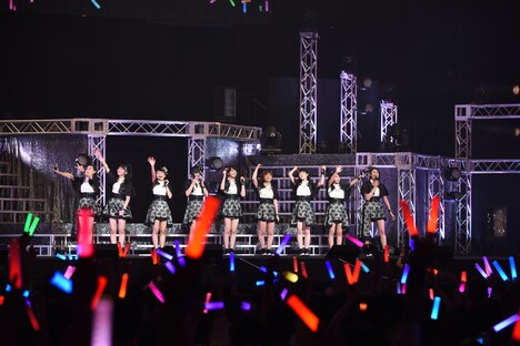 彼女たちは「乙女の逆襲」「ミステリーナイト!」といった人気曲を連続で歌い上げ、ファンのテンションを上げたところで1stシングル曲「夢見る15歳」を投下。イントロが鳴り響いた時点で会場には怒号のような声がこだまし、ファンは9人バージョンでの同曲のパフォーマンスをその目に焼き付けた。