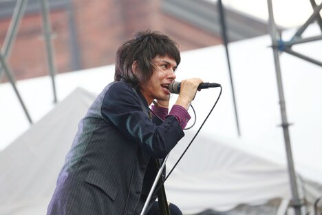 2番手はOKAMOTO'S。オカモトショウ(Vo)の「愛のこもった歌、受け取ってくれ!」という言葉から始まった1曲目は「ラブソング」。続いてオカモトコウキ(G)のギターリフが印象的な「Beek」、さらにファンキーなビートでオーディエンスを踊らせた「まじないの唄」と、彼らの魅力が炸裂したナンバーを連発する。途中のMCではハマ・オカモト(B)がライブ前日に出演したテレビ朝日系「ミュージックステーション」での裏話を明かし、「デビューして5周年ということで、これが皆さんへの恩返しになればと。でも1回こっきりじゃなく、新しいシングルを出すたびに出演できるくらいのバンドになりたいと思います!」と決意を語り、大きな拍手を浴びていた。