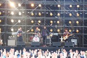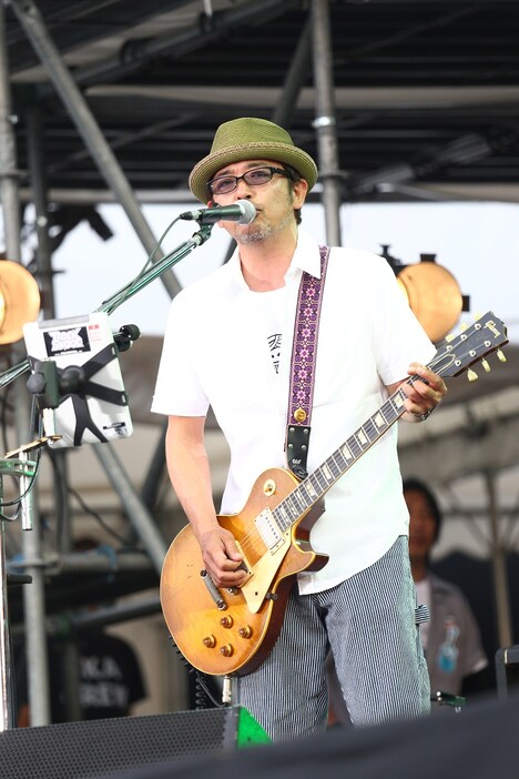 最初に登場した開場中アクトのサンドクロックは、滝田周(Vo, Key)と永田佳之(Vo, G)それぞれの声の魅力が生きた美しいハーモニーでオーディエンスを魅了する。続いてはこの日の1組目となる奥田民生のステージへ。「最強のこれから」「御免ライダー」と、力強い歌声と圧巻のバンドアンサンブルを横浜港に響かせる。MCで奥田は大雨だったライブ前日を振り返り、サポートベースの小原礼に向かって「よかった、昨日じゃなくて。昨日だったら礼さん帰ってたでしょ(笑)」と話しかけ、観客を笑わせる。その後も、柔らかなサウンドで会場を和ませた「スカイウォーカー」、王道のロックサウンドで盛り上げる「KYAISUIYOKUMASTER」と、幅広いナンバーを披露していった。