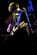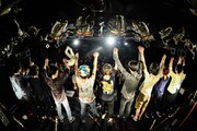 登場して早々に鈴鹿秋斗(Dr)が客席に身を投げ出すなど序盤からハイテンションだった3番手、夜の本気ダンス。米田貴紀(Vo, G)は「広島! 踊れる準備できてますか!? この曲で踊ってください!」と言ってダンスロックナンバー「B!tch」をプレイ。タイトなアンサンブルでフロアの熱気を引き上げる。そして「fuckin' so tired」では米田がフロアに降りて至近距離で観客に囲まれながら歌唱し、「戦争」では観客を座らせてクライマックスの瞬間に一気に立ち上がらせるなどの多彩なパフォーマンスを披露。トリにふさわしい一体感を最後までキープしてライブを締めくくった。