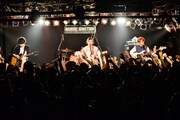 続いて登場したフレデリックは三原健司(Vo, G)、康司(B, Cho)の双子による息の合ったハーモニーを響かせながら、ひねりのあるロック&ディスコサウンドを展開。満員のフロアを眺めて康司は「今日この場所を選んでくれた皆さん、間違いないですね! 天才やと思います」と賞賛する。彼らは「愛の迷惑」の痛快なリズムでハンドクラップを誘い、「オドループ」では後ろのほうの観客も踊らせるなど扇情的なライブを繰り広げた。