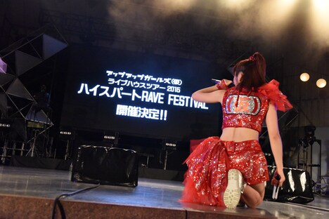 すると佐藤が今年の年末に「アップアップガールズ(仮)ライブハウスツアー2015ハイスパート RAVE FESTIVAL」と銘打ったおなじみのノンストップライブを開催することを発表。佐藤は「今回は『RAVE FESTIVAL』と題しているので去年以上にガシガシと盛り上げていきます! 1年分のうっぷんを晴らして2016年を迎えられるように皆さんに来てほしいです。アプガの生き様、そしてアプガの新世界に期待しててください!」とアピールした。