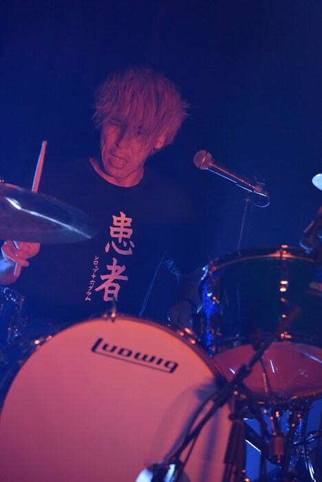 中畑が気合いを入れるように立ち上がってから始まった「吐く血」で、バンドのモードは一変。中畑が吠えるように叫び、鬼気迫るようなドラミングを披露した「Share the light」、五十嵐が感情を爆発させるように歌い上げた「天才」がホール内の緊張感を煽る。そして「真空」になだれ込むと、真っ赤に染まったステージの上で3人がそれぞれの楽器を豪快に鳴らし、爆音を客席に叩きつけて会場の熱狂をピークへと導いた。「パープルムカデ」「神のカルマ」と懐かしいナンバーを経て、届けられたのは「Kranke」の収録曲「Thank you」。3人は黄色い照明に包まれながら、観客へのお礼を伝えるように軽やかなアンサンブルを奏でた。