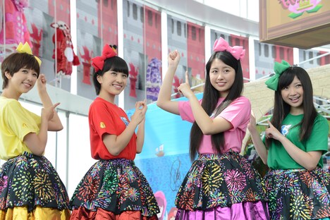 それぞれのイメージカラーのTシャツに花火を描いたスカートを着て現れた4人は、展覧会の内容についてトーク。百田は「めちゃめちゃ気合いが入ってます!」と述べ、佐々木は「番組(「ももクロChan」)を観てくれてる方も、ももクロをもっともっと知りたい方も楽しんでいただけると思います」と口にする。玉井は「私たちのファンの中には衣装を真似して作ってくださる方もいるんで、参考にしていただけたら」と展示されている衣装の数々をアピール。有安は会場内に設営されている、モノノフ(ファン)たちの創作作品の展示コーナーについて言及し、「すごく愛が詰まっていて、面白い作品だったり、力作があったり……」と目を輝かせた。