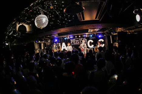 この日トリを飾ったのはAwesome City Club。彼らはシンセポップやソウル、R&Bなどさまざまなジャンルの要素を織り交ぜた楽曲で会場を盛り上げていく。クラウドファンディングを介して制作を進めているシングルの収録曲「アウトサイダー」「Pray」の演奏では、 atagi(Vo, G)やPORIN(Vo, Syn)、モリシー(G, Syn, Cho)が変幻自在なハーモニーを繰り広げる。またMCでPORINは9月16日にニューアルバム「Awesome City Tracks 2」をリリースすることを発表。ライブ後半ではそのニューアルバムの収録曲「WAHAHA」、アンコールでも新曲「GOLD」を披露し、新作への大きな期待を残してイベントを締めくくった。