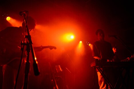 3番手のThe fin.は1980~90年代のシンセポップ、シューゲイザーを彷彿とさせるナンバーを繰り広げていった。どの楽曲も限られたコードのループで進行していき、音数も必要最低限ながら、独自の世界観を描き出す。そんな幻想的なサウンドをYuto Uchino(Vo, Syn)はボーカルでさらに彩っていく。彼らの代表曲「Night Time」のイントロが始まるとフロアからは歓声が上がり、大きく体を揺らす人も多く見受けられた。