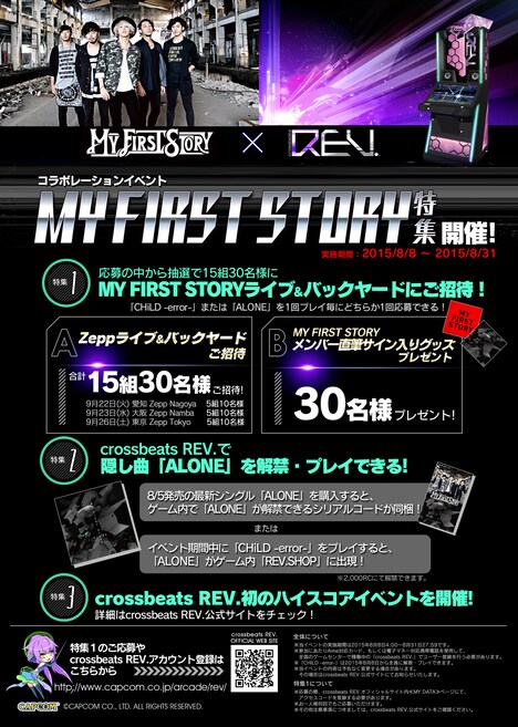 また8月8日にはゲーム内でMY FIRST STORY特集がスタートし、バンドの楽曲「CHiLD -error-」が追加される。なお8月31日までの特集期間中に「CHiLD -error-」をプレイすると、「ALONE」がゲーム内のショップに出現する。さらに期間中に「CHiLD -error-」または「ALONE」をプレイすると、プレゼントが当たるキャンペーンに応募することが可能。このキャンペーンでは8月から開催されるバンドの全国ツアー「WE ARE NOT ALONE TOUR 2015」の愛知公演、大阪公演、東京公演のライブおよびバックヤードへの入場権や、メンバーのサイン入りグッズが抽選で手に入る。