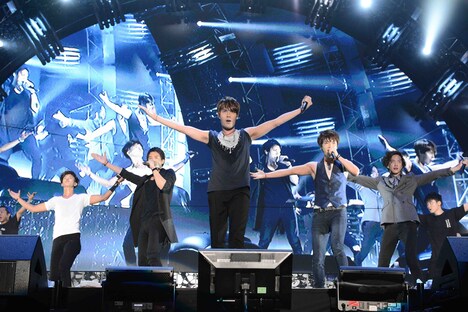 トリを務めたAAAのステージはさわやかなサマーチューン「LOVER」で幕開け。続く「SHOUT & SHAKE」では、末吉秀太の「かかってこい代々木!」という言葉を合図に7人がステージいっぱいに広がり、会場は大きな歓声に包まれる。続く「ハリケーン・リリ,ボストン・マリ」では日高光啓が「タオルぶんぶん振り回そうー!」と煽り、観客はタオルを回して一体となった。西島隆弘は客席を見渡し「皆さん元気ですね! 今日一緒のステージに立った出演者の皆さんのおかげですね」と笑顔をみせる。このMCの後のパートではミディアムチューンの「恋音と雨空」「さよならの前に」が披露され、感情を込めた歌声をつないでいくメンバーの姿にファンは熱い眼差しを送る。ビジョンにゲーム画面をイメージしたVTRが映し出され「GAME OVER?」がドロップされるとステージは佳境へ。7人はサインボールを客席へ投げ入れ、舞台上を縦横無尽に動き回った。ラストナンバーの「PARTY IT UP」では銀色のテープがフロアに放たれ、きらびやかにイベントのフィナーレを告げる。観客に笑顔を向けながらこの曲をパフォーマンスしたAAAは、オーディエンスと一緒に大きなジャンプをしてステージを締めくくった。
