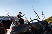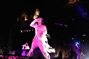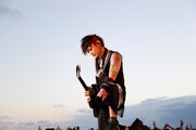 夏恒例のイベントとしてファンの間で親しまれている「BEAST PARTY」。今年は2年ぶりに海辺での開催となり、多くのファンが水着姿でライブを楽しんだ。太陽がゆっくりと傾き始めた17:30頃、客席エリア中央に屈強な男たちが担ぐ廃車に乗ってHYDE(Vo)とK.A.Z(G)が登場。2万人のオーディエンスは悲鳴のような歓声をあげて2人を歓迎した。Ju-ken(B)、JIN(Key)、Arimatsu(Dr)が待つステージにたどり着いた2人は、観客を煽るように1曲目に「REVOLUTION II」をプレイ。曲中には水柱が上がり、HYDEが散水用ホースで観客を濡らすなどパーティムードに拍車をかける。さらに「AHEAD」「ANGEL TRIP」といった疾走感のあるロックチューンや、ダンサブルな「TROUBLE」などがプレイされ開放的な空気が生み出された。