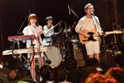 GREAT3はメンバーそれぞれが顔を見あわせながらグルーヴィな演奏を届け、場内にリラックスした雰囲気を作り上げていく。「Last Song」では片寄明人(Vo, G)とjan(B)の美しいコーラスワークが場内に響き渡った。その後バンドは片寄の「懐かしいのやろう」という声を合図に「Little Jの嘆き」を演奏。大いに歓声を浴びた彼らは「男を騙す悪い女の歌」だという「レイディ」につなげる。ラストナンバーは白根賢一(Dr)のハスキーな歌声が印象的な「マイ・ウェイ」。演奏が終わると片寄は「サンキュー! 次はAwesome City Club!」と声を上げてACCへとバトンをつないだ。