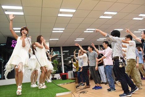 そしてメンバーはGYAO!の宮本直人社長にインタビューを実施。同郷であることが発覚した宮本社長と意気投合した7人は、宮本社長からの提案で急遽GYAO!社内のカフェにてミニライブを行うことに。メンバーはスタッフが見守る中、人気曲を中心に特設ステージでパフォーマンスを繰り広げた。