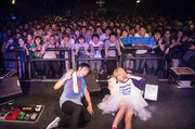 2人はいつも通りのゆるいテンションのトークを挟みながら、「すしですし」や「おばけになっても」、「今夜がおわらない」といった観客も一緒にダンスを踊るナンバーで会場の一体感を高めていく。「たびたびアバンチュール」から始まったアッパーチューンを集めたメドレーでは、ヤマモトによって曲が鮮やかにつながれていくたびにフロアから歓声が沸き上がった。