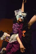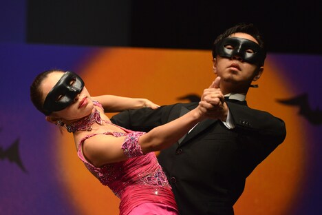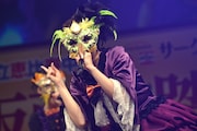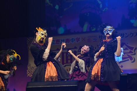 抽選によりファン200名を招待して行われたこのイベント。観客にはドレスコードとして“仮装”が指定されており、円卓が並ぶ客席は一足早いハロウィンムードで満たされていた。イベントはまずプロの社交ダンサーによるパフォーマンスからスタート。優雅なダンスが終わると突然「何だって? ハロウィンパーティにぴったりなフライドチキンが食べたくて、仮面を付けた中学生がまぎれているだと? 仮面を付けた中学生……出てこいや!」という安本彩花のナレーションが暗転した場内に鳴り響き、客席ドアから仮面姿のエビ中メンバーが姿を現す。8人はそのままステージに上がり、歌唱パートをシャッフルした「仮契約のシンデレラ」で観客を混乱させた。