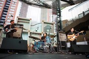 3組目のハミングキッチンは「僕の敬愛するミュージシャンに捧げます」とのメッセージとともにRCサクセションのカバー「君が僕を知ってる」を演奏。「皆さん濡れてないですか?僕は晴れ男なんで、雨の中ライブをするのは初めてなんですけど、雨でもとても楽しいです」と語りつつ、透明感のあるナチュラルな歌声とアコースティックギターでゆったりした午後のひとときを作り出した。