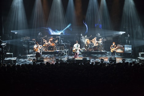 中盤に差し掛かった頃、野田は「智史がちょっと病にかかって休憩中だから、2人のドラマーとツアーを回ります。2人のおかげでツアーができています」と森と刄田をファンに紹介。ゲストの米津については「彼のことを尊敬しているし、勝手に彼の音楽と俺らの音楽に通じるものを感じた。今日初めて会ったけれど、初めてじゃない気持ちで話ができた。全力でライブをしてくれた彼が笑顔で『楽しかった』って言ってくれてすごく幸せな気持ちになりました」とうれしそうに語った。ライブ本編で彼らは最新アルバム「×と○と罪と」収録の「実況中継」や、11月25日リリースのシングル「記号として / ‘I’ Novel」の表題曲の1つで、東京メトロのCMソングとしておなじみの「‘I’ Novel」などを披露。ひさしぶりの国内公演を全力で楽しみ、ステージを下りた。