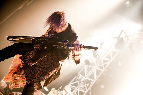 メイリアが合流し「ARiA」「SPiCa」というキラーチューン2曲で幕を開けたライブ後半戦はカラフルな展開に。「Harmony」「march」というバラード2曲をドラマチックにパフォーマンスした彼らだったが、その直後には一転。ショルダーキーボードを担いだtokuがステージ最前線に躍り出ると「griletto」「ambiguous」「BLAZING」とヒットチューンを連射する。そして「ラストだから!」「みんなも全力を出し切ってよ」と叫んだメイリアがダンサー2人とともに扇子を使った和テイストあふれるダンスで魅せる「オオカミ少女」をプレイして、大歓声の中、ステージをあとにした。