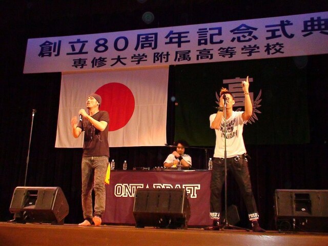 ONE☆DRAFTは「大航海」「ラヴソング」で会場を盛り上げた後、ヒットシングル「アイヲクダサイ」を熱唱。さらにラストナンバーとしてリリースされたばかりの新曲「情熱」も披露し、1200人の生徒たちを熱狂させた。