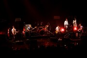 その後はあーちゃんと佐藤によるギターの轟音が会場を満たした「ミュージシャン」「夜が明けたら」でオーディエンスを圧倒。佐藤の「こんなにたくさんの人が集まってくれて本当にうれしいです。今日はくるりさんに出ていただいて、感無量でした。自分たちも『東京』という曲があるのでそれをやります」という言葉に続いて、バンドは代表曲「東京」でラストスパートをかける。そして本編の最後に「Donut」を演奏してステージを下りた。アンコールを受けたきのこ帝国はR&Bテイストの「クロノスタシス」、爽快なロックナンバー「ありふれた言葉」の2曲をプレイし、「怪獣と猫のツーマンツアー」の幕を下ろした。