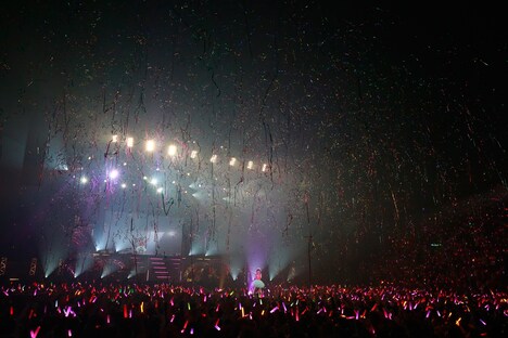 そしてアルバムのラストナンバー「with you」を除く「Blooming!」収録のすべての楽曲をプレイした彼女は、直前のシリアスムードを一掃するかのように「また楽しい曲に戻っていい?」と笑顔でひと言。これに客席が大歓声で応えると、2014年11月のアルバム「アップルミント」から「泣きべそパンダはどこへ行った」と「キックとパンチどっちがいい?」の2曲をまさに楽しく歌うと、自らもペンライトを手にして「好きな色を付けて」と、彼女のライブにおけるキラーチューン「Merry Go」をドロップ。「最後はピンクがいいな」と、盛り上がる客席をピンクのペンライトの光いっぱいにして、改めて「Blooming!」のラストナンバーにしてアッパーな四つ打ちナンバー「with you」をプレイして、ステージをあとにした。