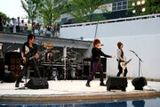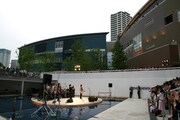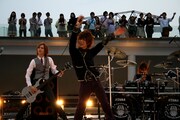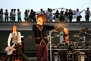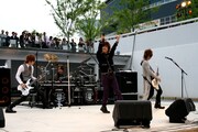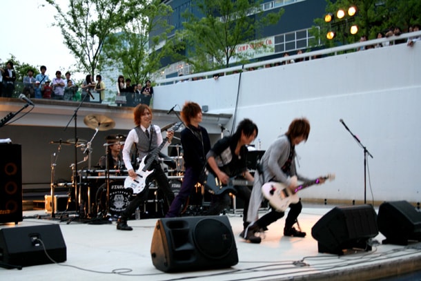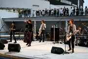 池の中心に設置されたステージに5人が登場すると、会場に集まった大勢のファンは早くも興奮状態。昨年発表された「TheMe」が演奏されると、多くの買い物客や修学旅行中の学生たちも足を止め、彼らの白熱のステージに見入った。