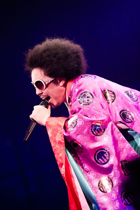 「IKEMAX THEATER」のタイトル通り、映画をコンセプトにしたステージが展開される今回のライブ。レキシは随所に映画の名作へのオマージュを込めたパフォーマンスを散りばめて観客を楽しませる。また、このツアーより新たにバンドメンバーに参加した貝塚太郎(Piano, Cho / 磯貝サイモン)はレキシの出すちょっかいに笑顔で耐えながら鍵盤を叩き、ときにレキシと力強いハーモニーを響かせて客席を沸かせた。新曲「SHIKIBU」では、袴の上に簡易型の十二単を羽織ったレキシが袖をはためかせながら気持ちよさそうにステージ上を舞う。「この曲の『Hey!』は、平安京の“平”だからね!?」という彼の呼びかけにオーディエンスは大きな「平!」の声で応え、レキシはTAKE島流し(Sax, Flute / 武嶋聡)の吹き鳴らす流麗なフルートの音色に乗せて「めぐりあひて……」と紫式部の歌を詠みあげた。