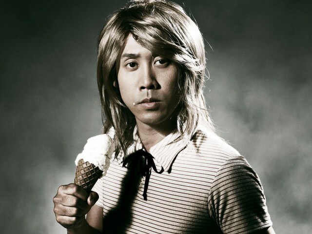 今回のコラボレーションは、大泉の大ファンというGReeeeNのメンバーの熱烈なオファーによって実現したもの。撮影は川崎市内のスタジオで行われ、大泉はアルバムジャケットに起用されたアイスクリームを持った少年と同じボーダーシャツを着用し臨んだ。