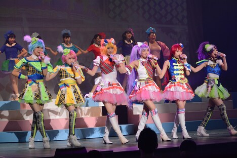 ステージでは劇中ユニット結成の経緯などアニメ版「プリパラ」に登場したシーンの数々を、茜屋演じる真中らぁらの「かしこまっ!」や、芹澤演じる南みれぃの「~ぷりっ」といった決めゼリフを交えつつ再現。また「Make it!」「Pretty Prism Paradise!!!」「Realize!」「0-week-old」など劇中曲が歌われるライブパートでは、i☆Risの面々がステージ奥の巨大スクリーンに投影されるゲーム画面とのシンクロダンスを披露した。