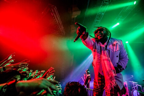 Skindredはまずベンジー・ウェッブ(Vo)が「カモン!」とまくしててライブをスタート。彼は「Doom Riff」で白黒のイギリス国旗を掲げつつパフォーマンスした。「Kill The Power」では観客とベンジーによる「Kill The Power!」のコール&レスポンスが実施される。最後の「Warning」ではKenta Koie(Crossfaith)がゲストボーカルとしてステージに上がり、ベンジーとともに「ありがとう!」と感謝の言葉を述べた。