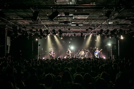 長澤知之(Vo, G)がアコースティックギターを爪弾いたカントリー調の「リンリンリン」では小山田が鈴を鳴らし、身ぶり手ぶりしながら歌唱。続く「北極大陸」で後藤大樹(Dr, Cho)が叩くカホン、長澤と小山田の巧みなコーラスワークが響くと、オーディエンスは指笛や拍手を送った。その後、後藤が刻むタイトなビートに乗せて叫ぶようなツインボーカルが発せられた「Mt.ABURA BLUES」や長澤の優しい歌声に小山田がハーモニカを重ねた「15の夏」、4人のシンガロングが壮大なアンサンブルを生み出した「メアリージェーン」など多様な楽曲が披露されたのち、「会いにいくよ」で本編は締めくくられた。