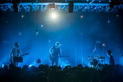 続くALは「HAPPY BIRTHDAY」でライブをスタートさせ、メンバーそれぞれが躍動感のあるプレイを披露して観客の体を揺らす。藤原寛(B, Cho)のムードあふれるベースラインが印象的な「ランタナ」では場内のあちこちから垂れ下がった電球が光り、幻想的な空気を漂わせた。イヤーモニターを付けてライブに臨んだ小山田壮平(Vo, G)は「やっぱイヤモニっていい感じですね」と話すも、その後イヤモニが動作していなかったことに気付き「耳栓状態だから音が取りやすかったんだ!」と声を上げる。彼はそれをごまかすように、すかさず「ALへようこそー!!」と両手を広げて観客の笑いを誘った。