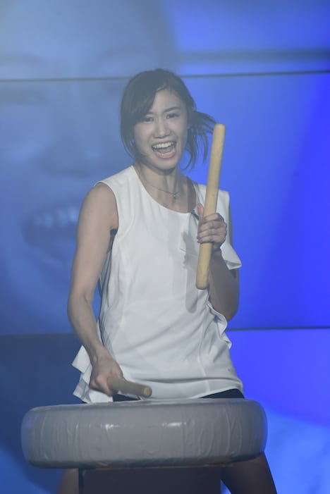 DEAR KISSは1番手で登場し、まずはノリのいいナンバー「Perfect Love」を歌唱。MCコーナーでは進行役として登場した四島が場を仕切り、メンバーの特技が披露されていく。RIKAKOは得意のタップダンスを華麗に踊り、みいわと藤本も息の合ったヒップホップダンスを届けた。最後は水野がタイヤを改造して作ったというお手製の太鼓を使って得意の和太鼓演奏を披露。迫力ある水野のバチさばきにオーディエンスは圧倒され、演奏が終わると客席からは大きな拍手が巻き起こった。その後彼女たちは「After the rain」「Shooting Star」の2曲を歌い上げ、トップバッターとして会場の空気をしっかりと温めてゲストのイケてるハーツにバトンをつないだ。