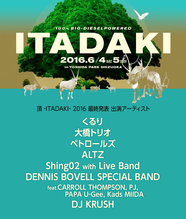 6月4日と5日に静岡・吉田公園特設ステージにて行われる野外ライブイベント「頂 -ITADAKI- 2016」の最終ラインナップが発表された。