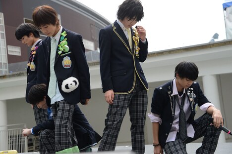 その後彼らは「イチニノサン」「恋心」など全6曲をパフォーマンス。ラストの「反抗期アバンチュール」では、佐野、板垣、塩崎、山崎がステージを飛び出し、観覧エリアのあちこちに散らばって歌声を届けた。最後に5人は、このあと18:30よりニコニコ生放送にて特番を配信することをアナウンス。「観てね!」とファンに呼びかけ、深いお辞儀をしてミニライブを終えた。