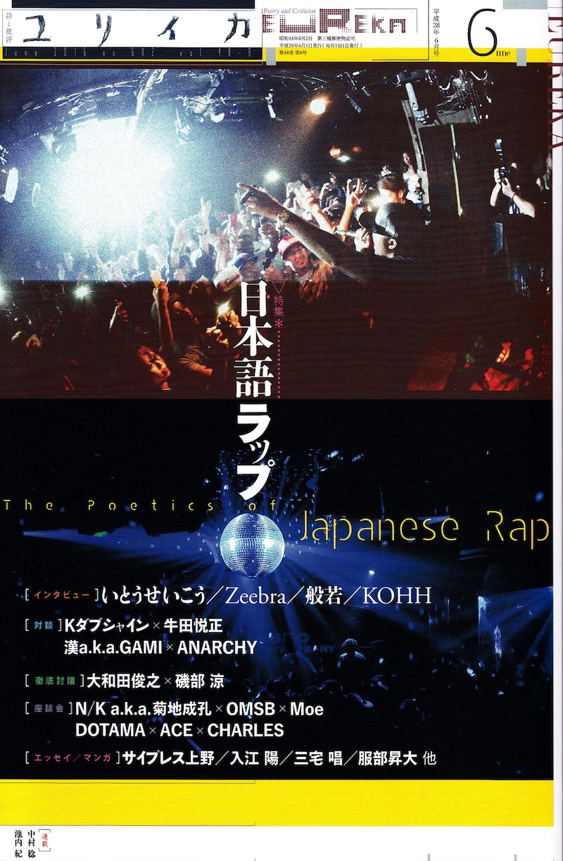本日5月27日発売の雑誌「ユリイカ」2016年6月号で、日本語ラップの特集が組まれている。